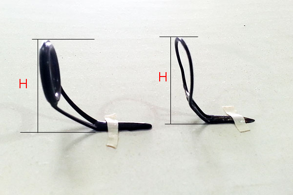 So, here it goes. The first step in replacing your rod guide is to go out and purchase a new rod guide. I try to get an exact replacement as much as possible but sometimes that is just impossible, so in such situation I try to get one with the nearest fit and with the same height or the original. The height of the guide is measured from the feet to the the top edge of the guide. In the image above the height is represented with the letter "H", do note that guides come with a single foot or a pair of feet. In this example I am using single foot guide.