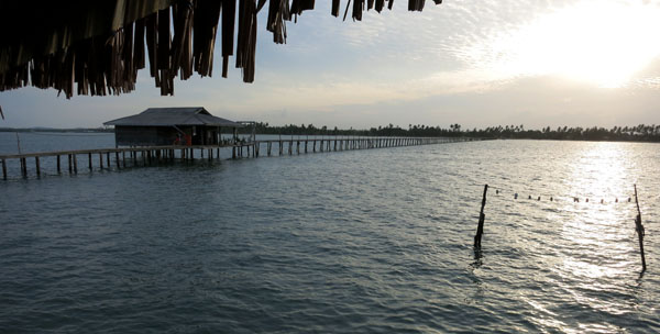 | I got to know about Kawal kelong during my trip to Elly some years ago, on that trip I manage to see the length of the jetty or walkway to the kelong and that stirred my interest to visit it some day. On June 2015 I finally manage to make a trip there. Kawal Kelong is run by a senior Singaporean couple, and it's situated on the eastern coast of Bintan (Trikora). The kelong or I should say house on stilts is constructed in a channel within the coastal flat which stretches far out from the shore, that's the reason for the long (800meters) jetty. ( You can see it on google map @ location 1.001155, 104.654580 ) |