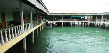 Surrounding 3 sides of the pool are the rooms of the kelong resort. The fourth sides houses the dinning area, kitchen, service counter (where you can order your food) and where the owner and workers stays. The image below shows the dinning (not in use) area, service counter (at the right ) and some section where visitor can sit around and relax. |