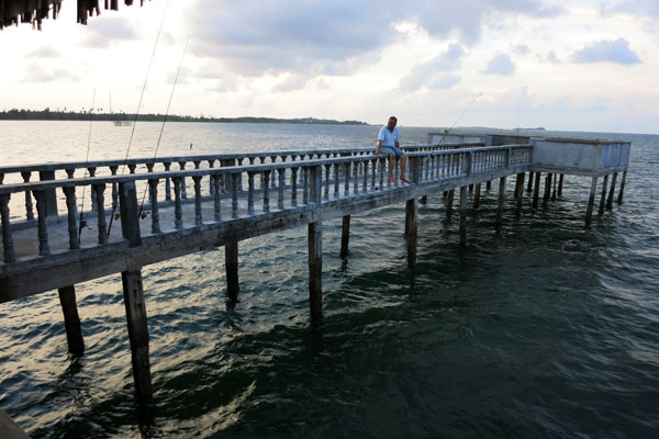 | You can fish almost anywhere around the resort but this is the main area where most of the fishing gets done. A short jetty which is stable and clean. As you can see from the image below, the jetty has no shade so when it gets too hot everyone just fish along the outer corridor besides their rooms. |